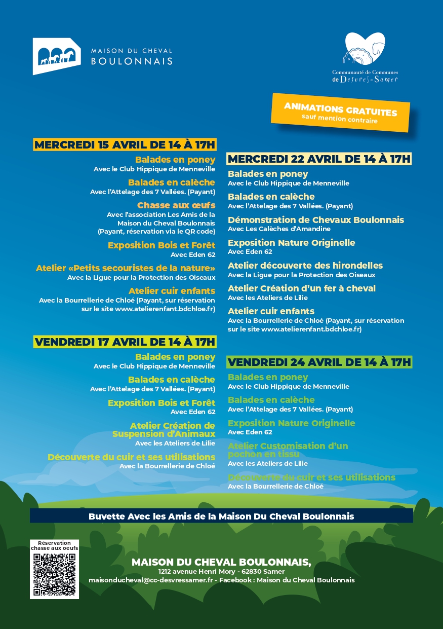 La Communauté de Communes de Desvres-Samer vous invite à fêter le retour des beaux jours avec un programme riche en animations pour toute la famille. Balades, ateliers créatifs et découvertes nature vous attendent en avril. Consultez l’agenda complet juste ici !